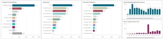 Exemplo: clicar em “Vigente” no gráfico de “Situação dos precedentes” aplicará o filtro automaticamente a todos os gráficos do painel.