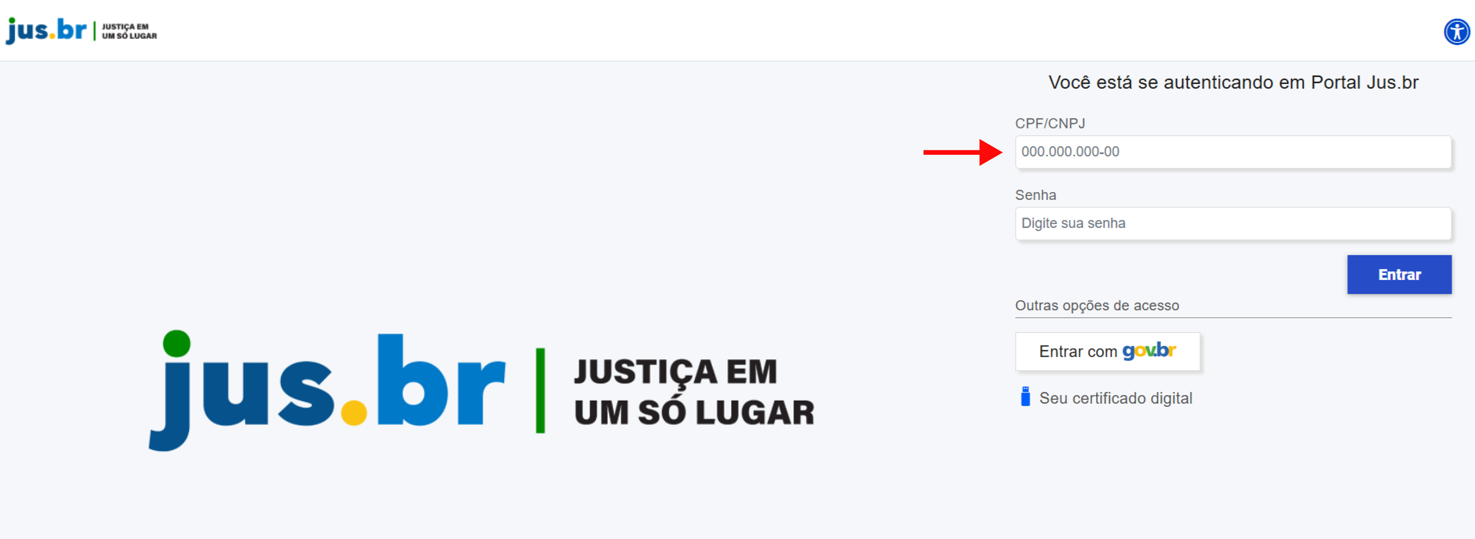 Imagem 01: Página de login Jus.br.